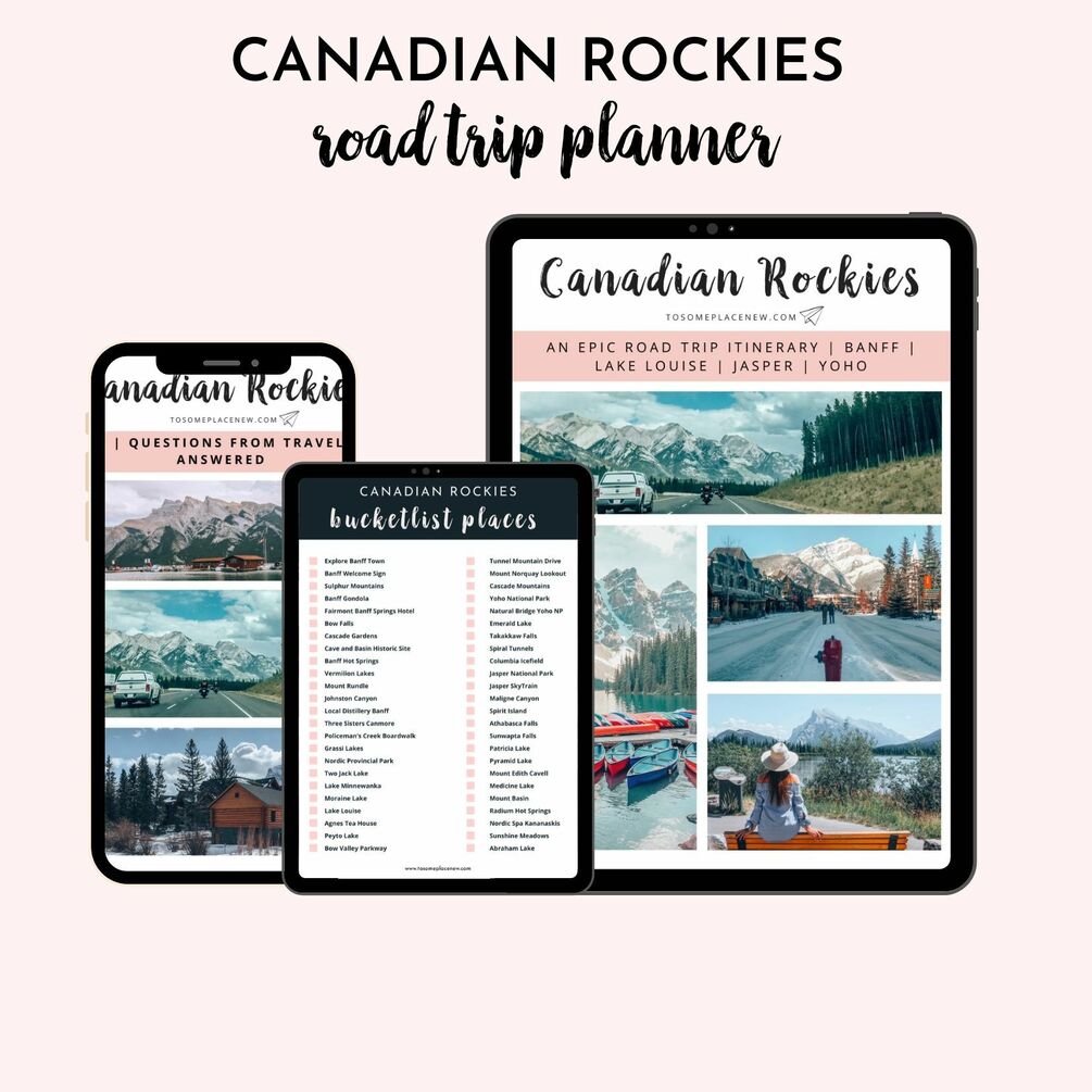 The ULTIMATE road trip planner for the Canadian Rockies with easy to adapt itinerary samples, leaving out any guesswork. This comprehensive guide includes accessible sightseeing spots for hikers and non-hikers, GPS coordinates with 5 custom maps and practical tips, to make the most of your trip!